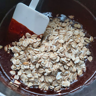 Dodaj pozostałe składniki - czyli bakalie, dwa jajka i płatki owsiane.